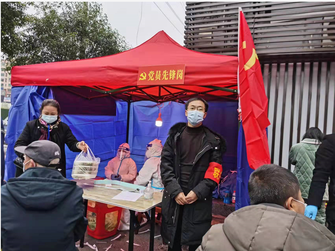 “我是设计院党员,我来社区报到参与社区疫情防控工作”, “请提前打开核酸检测小程序,保持一米间距,耐心等待” 积极引导居民有序排队。这是设计院奋战在抗疫一线的党员在社区核酸检测现场维持秩序和信息登记录入工作的缩影。