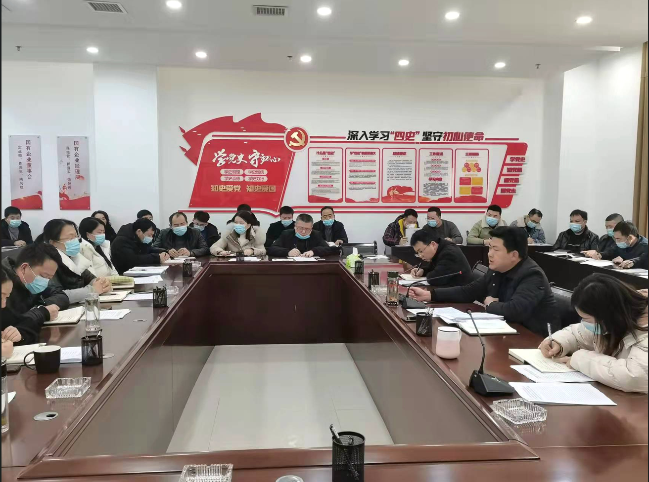 会上,组织学习了《求是》2022年第3期发表的习近平总书记重要文章《努力成为可堪大用能担重任的栋梁之才》以及《国务院关于支持贵州在新时代西部大开发闯出一条新路的意见》(国发[2022]2号)、《贵州省第十二届委员会第十次全体会议精神》《铜仁市第二届委员会第十三次全体会议精神》等文件内容,审议通过了公司资质乙级升甲、资质增项、业务拓展、深化改革等五项重点工作计划,并对2022年党建工作作了安排和部署。