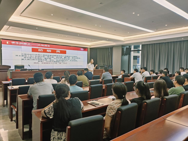 为提高火灾应对能力,增强防火意识,确保训练全过程安全,遏制各类事故发生,8月15日下午,m88asia(以下简称“设计公司”)组织开展夏季消防安全知识培训和应急演练活动。设计公司副总经理杨富林主持讲座。全体在家干部职工参加活动。